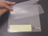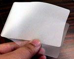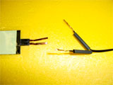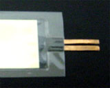 ![]() リード線を付けてラミネート → シワがよって失敗! ラミネーターも汚れました。こちらはおすすめできません。 |